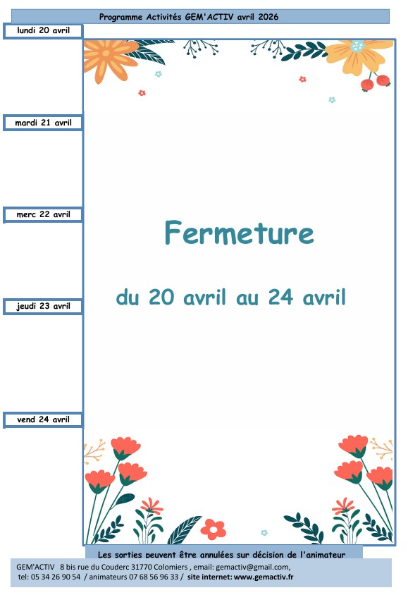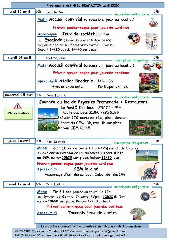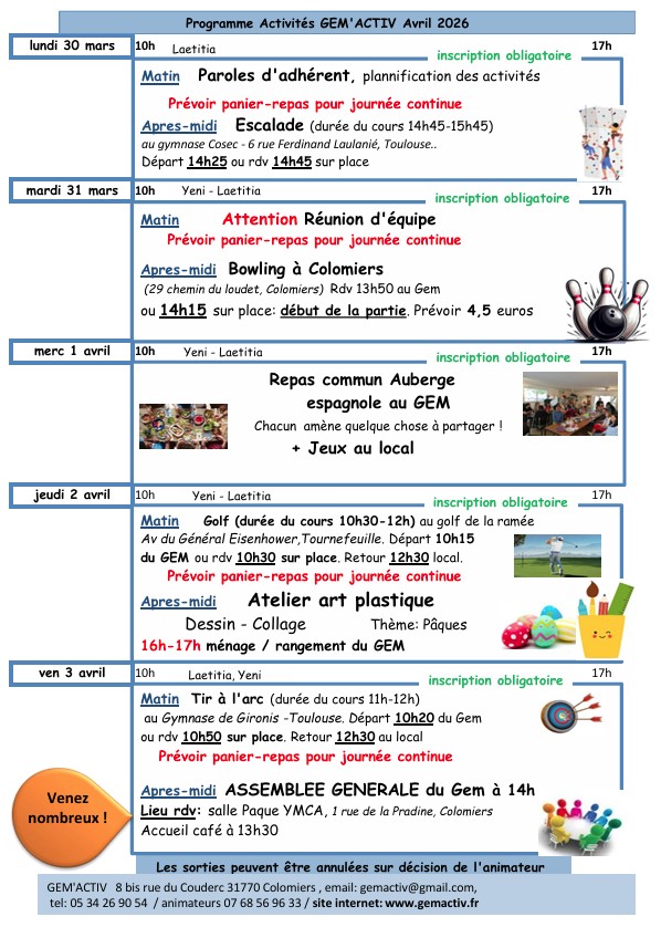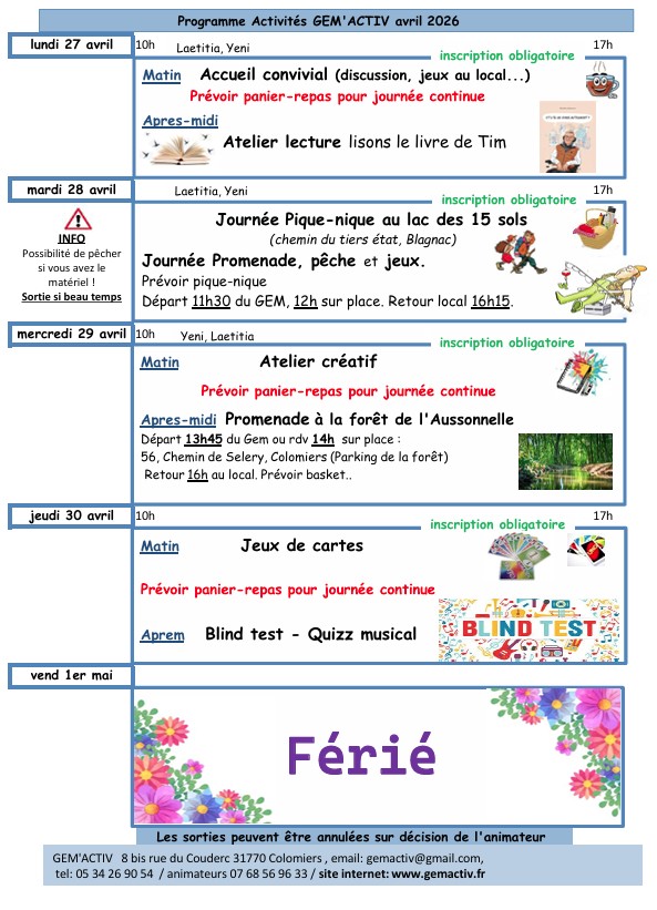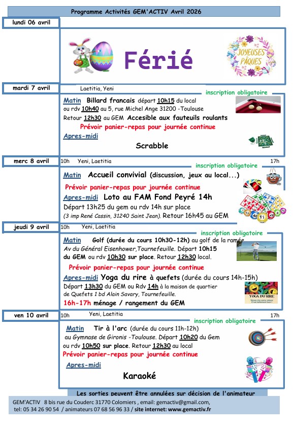 Voici ci-dessous, le programme d’activités du mois d’avril 2026: