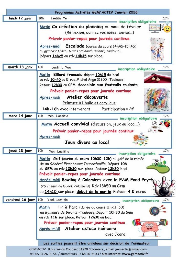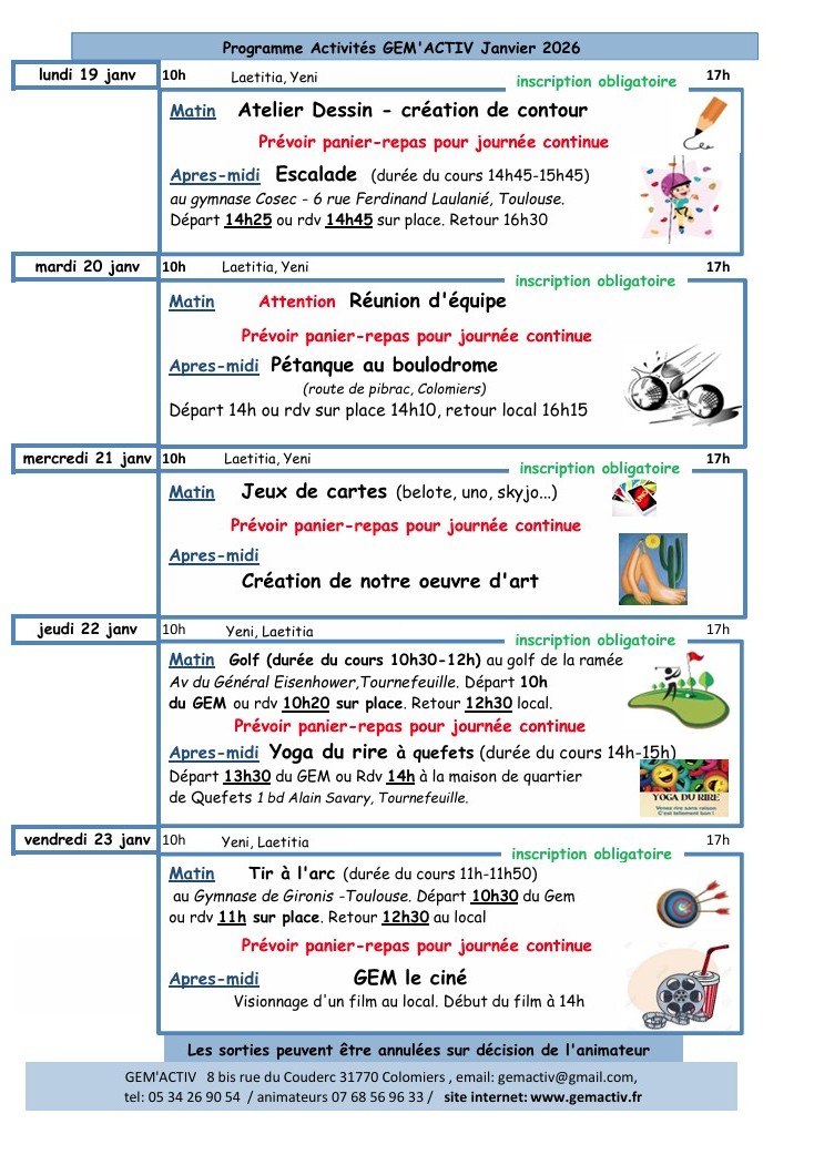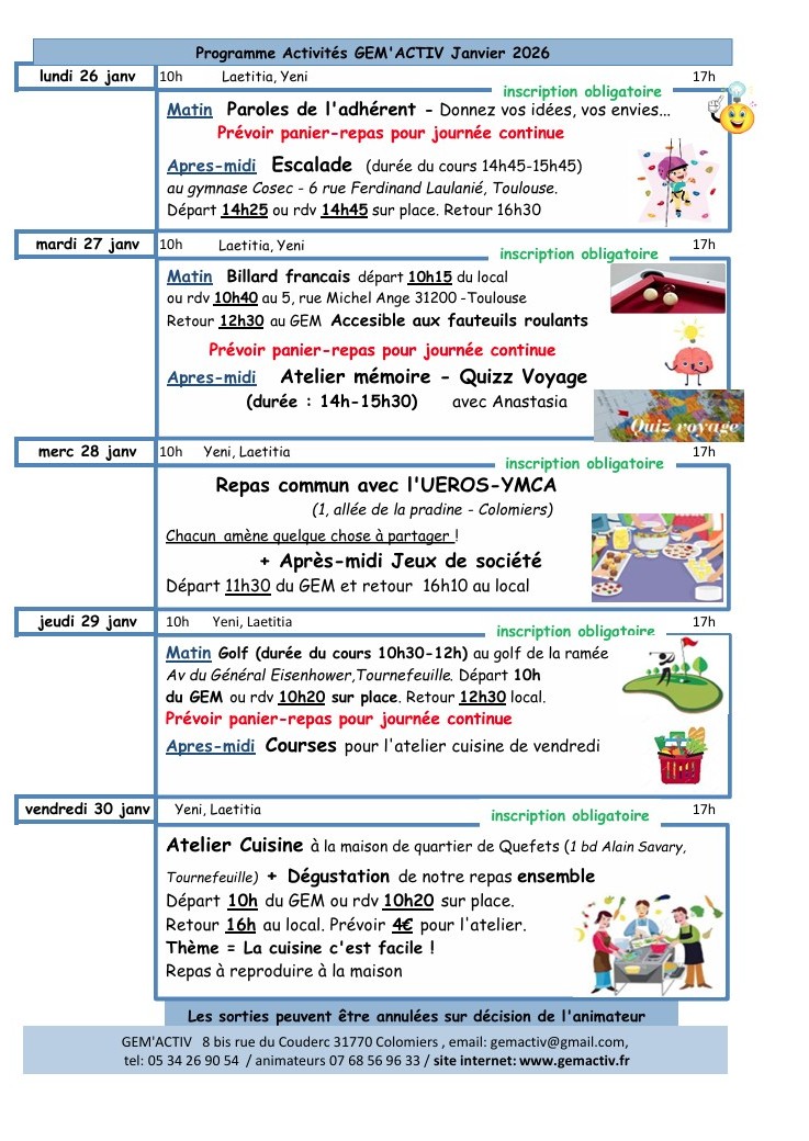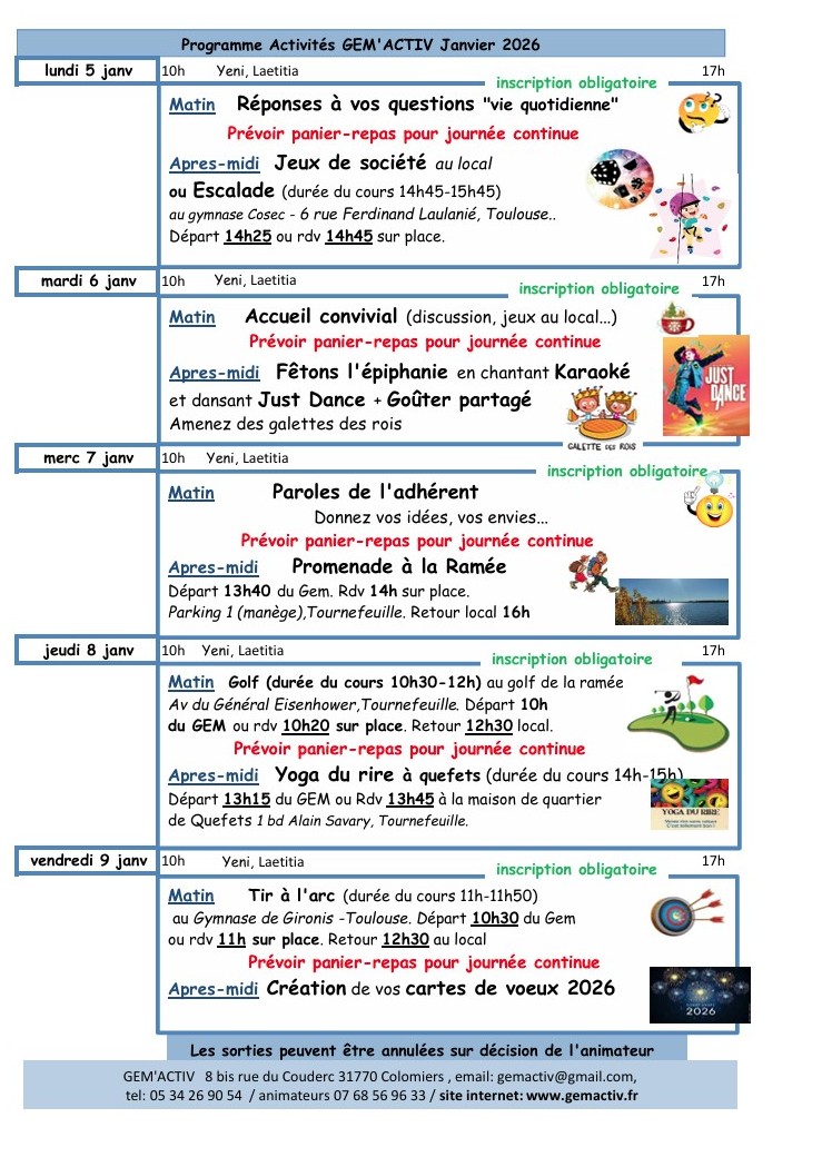 Voici ci-dessous, le programme du mois de novembre 2025 :